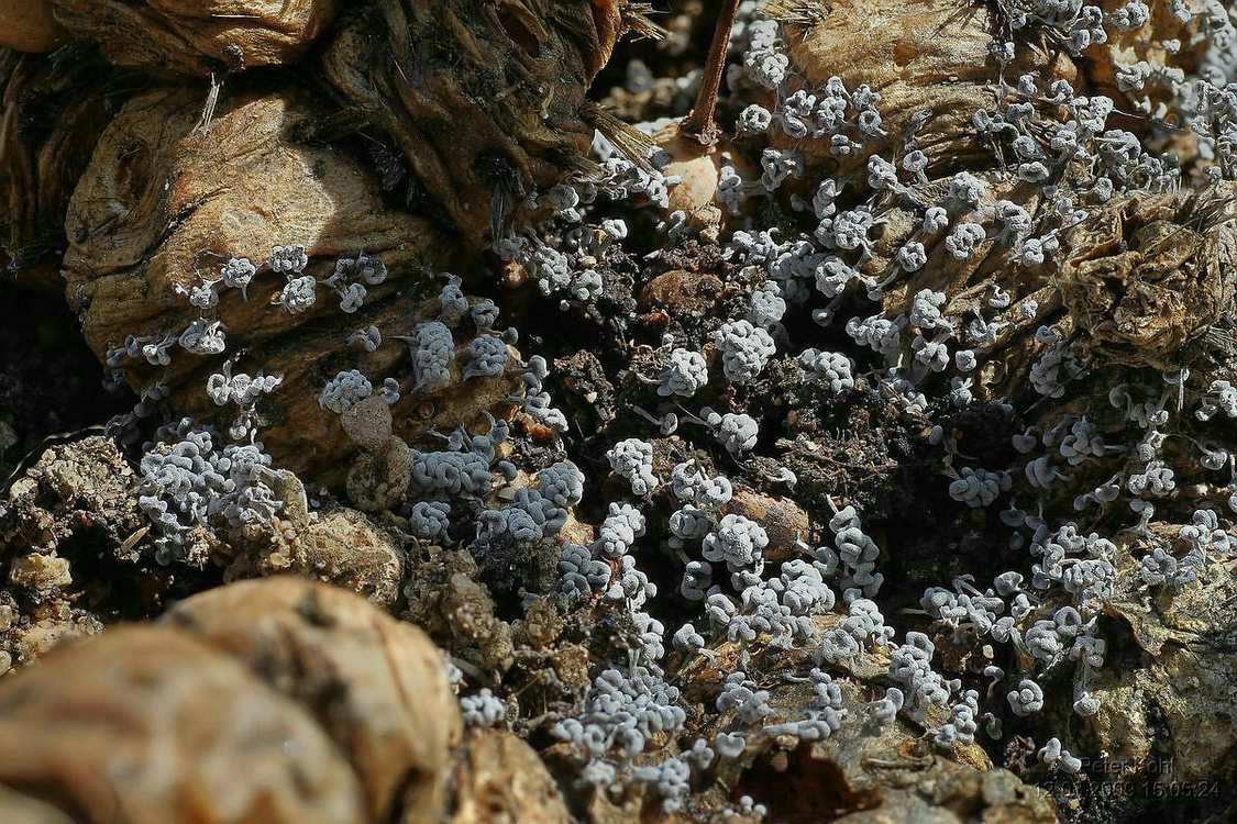 Diese Pilze wuchsen auf einer abgestorbenen Euphorbia globosa . Name noch unbekannt. Größe 1-2mm